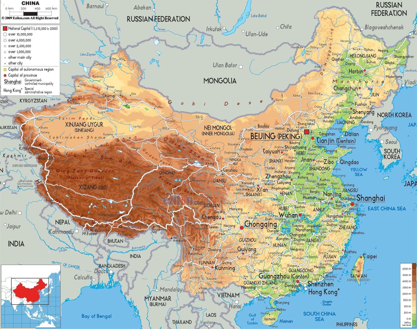 Китай на карте. Подбородок карте (Восточная Азия - Азия) для печати. Подбородок карте (в Восточной Азии - Азия) скачать.